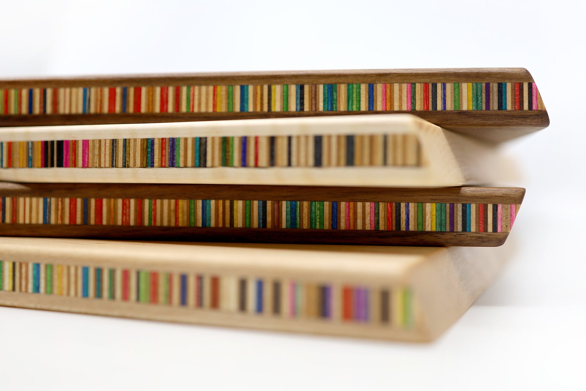Features our signature vertical skateboard stripes running along each edge of the board. Skateboard strip palette will be the same as shown on the photos.