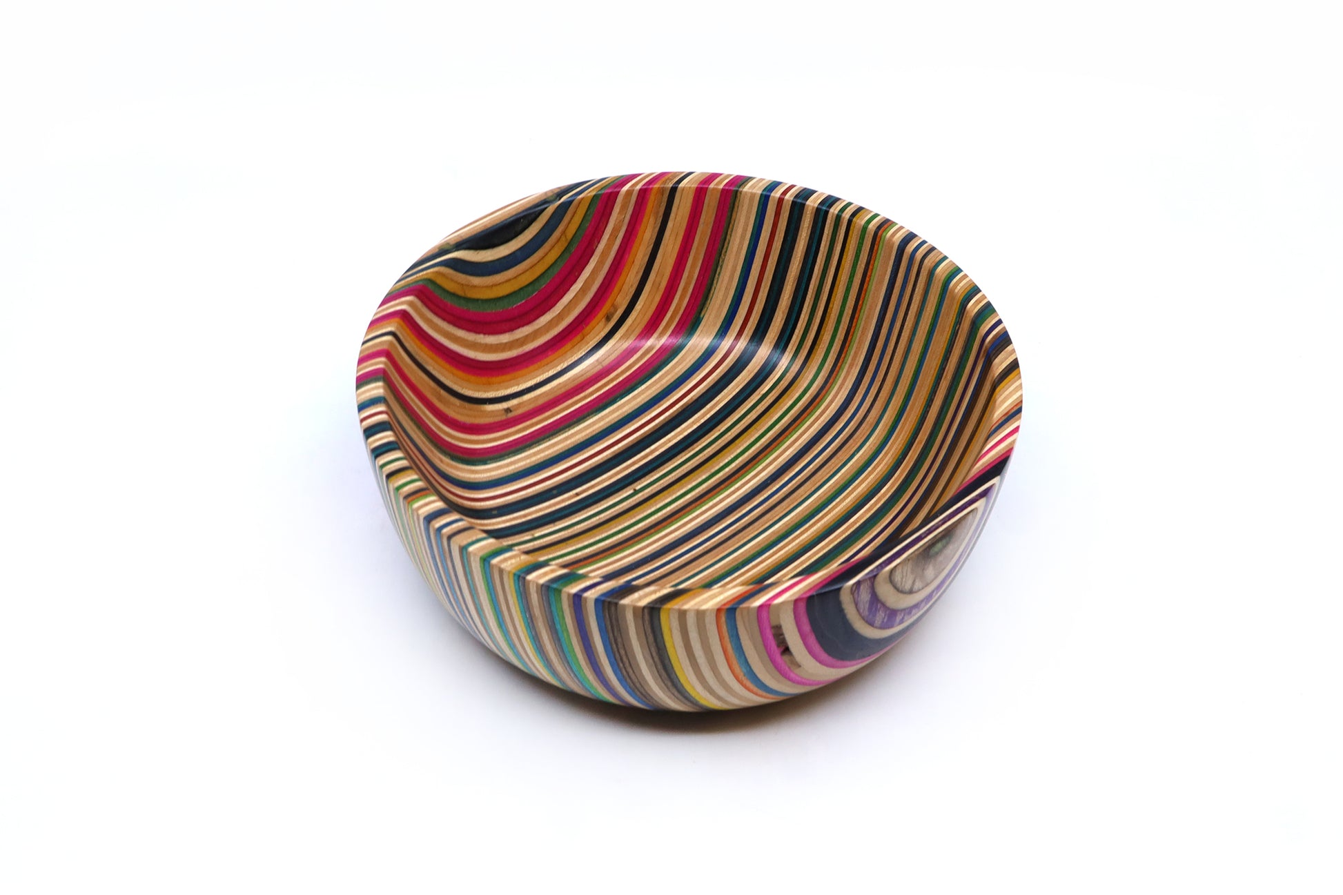 Our one-of-a-kind bowls are crafted from multiple repurposed skateboard noses and tails, carefully laminated and turned on a lathe to create vibrant, distinctive pieces that add a colorful and unique touch to your home decor!