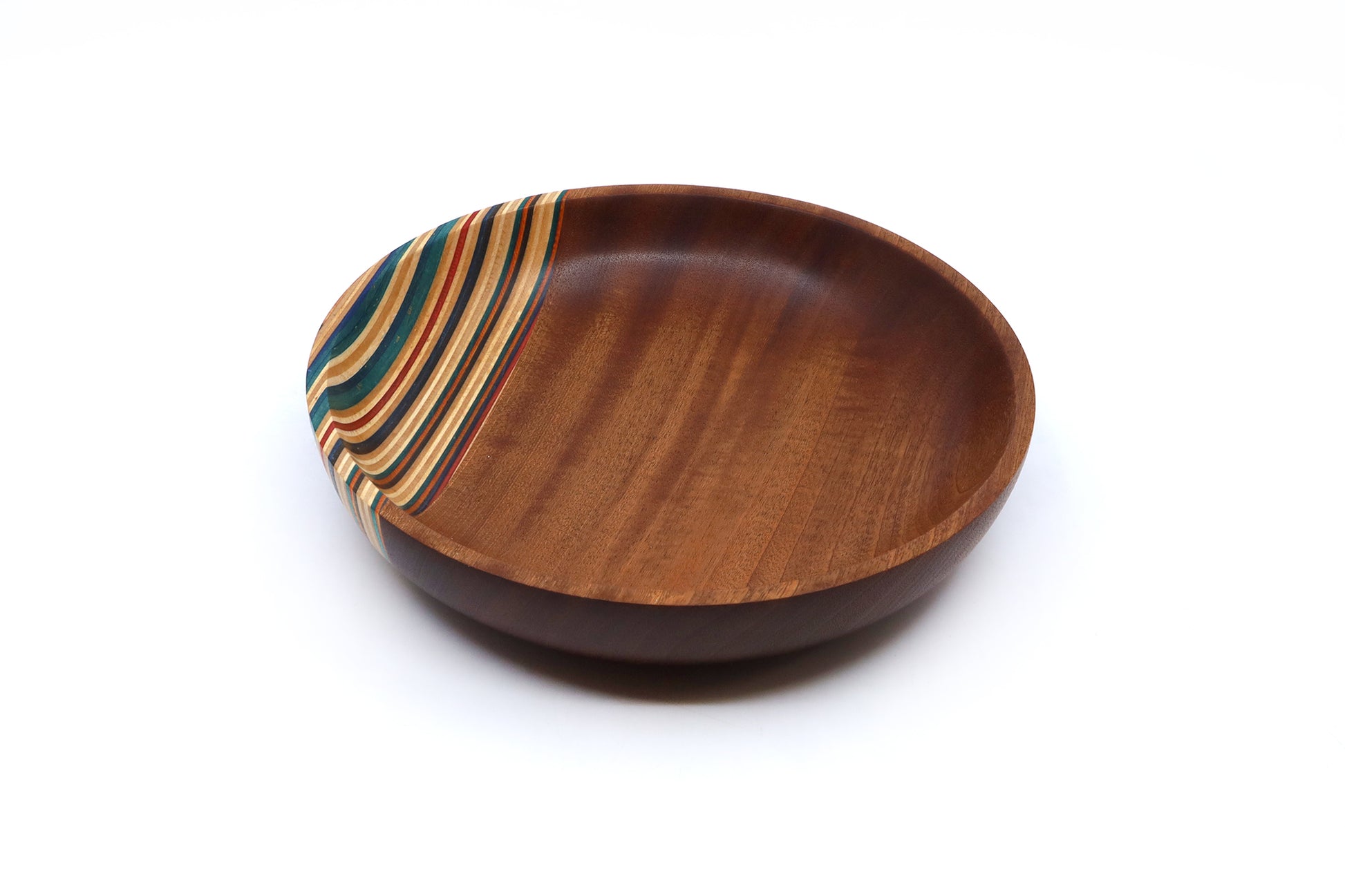 This valet dish would work great as a valet dish to hold your essentials or it will look stunning on its own! Made from repurposed skateboards and walnut off cuts from our furniture production.