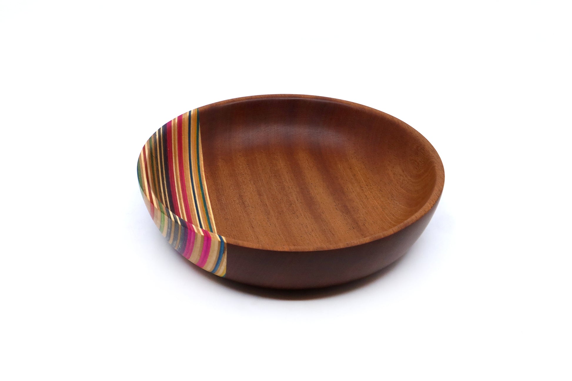 This valet dish would work great as a valet dish to hold your essentials or it will look stunning on its own! Made from repurposed skateboards and sapele off cuts from our furniture production.