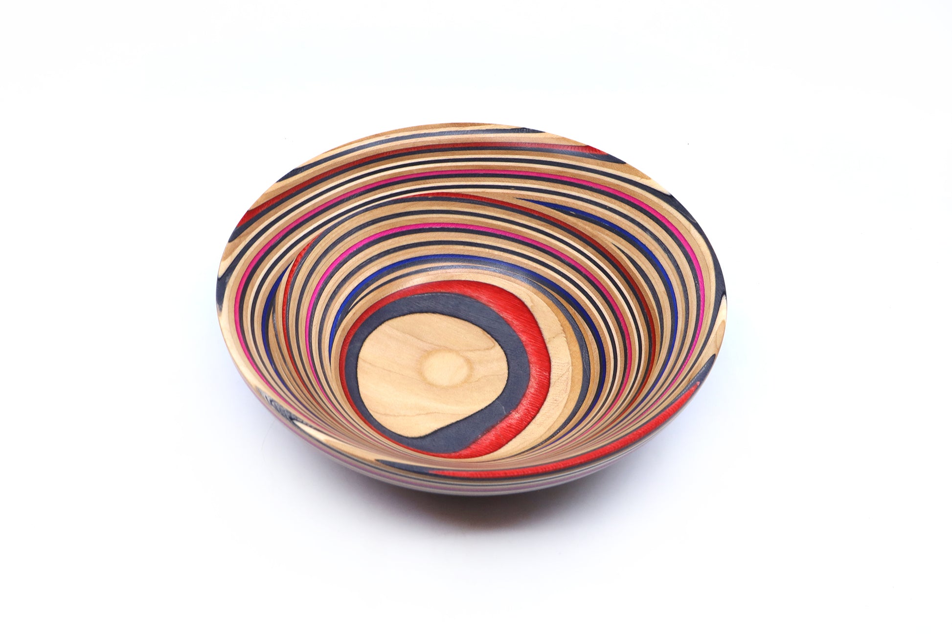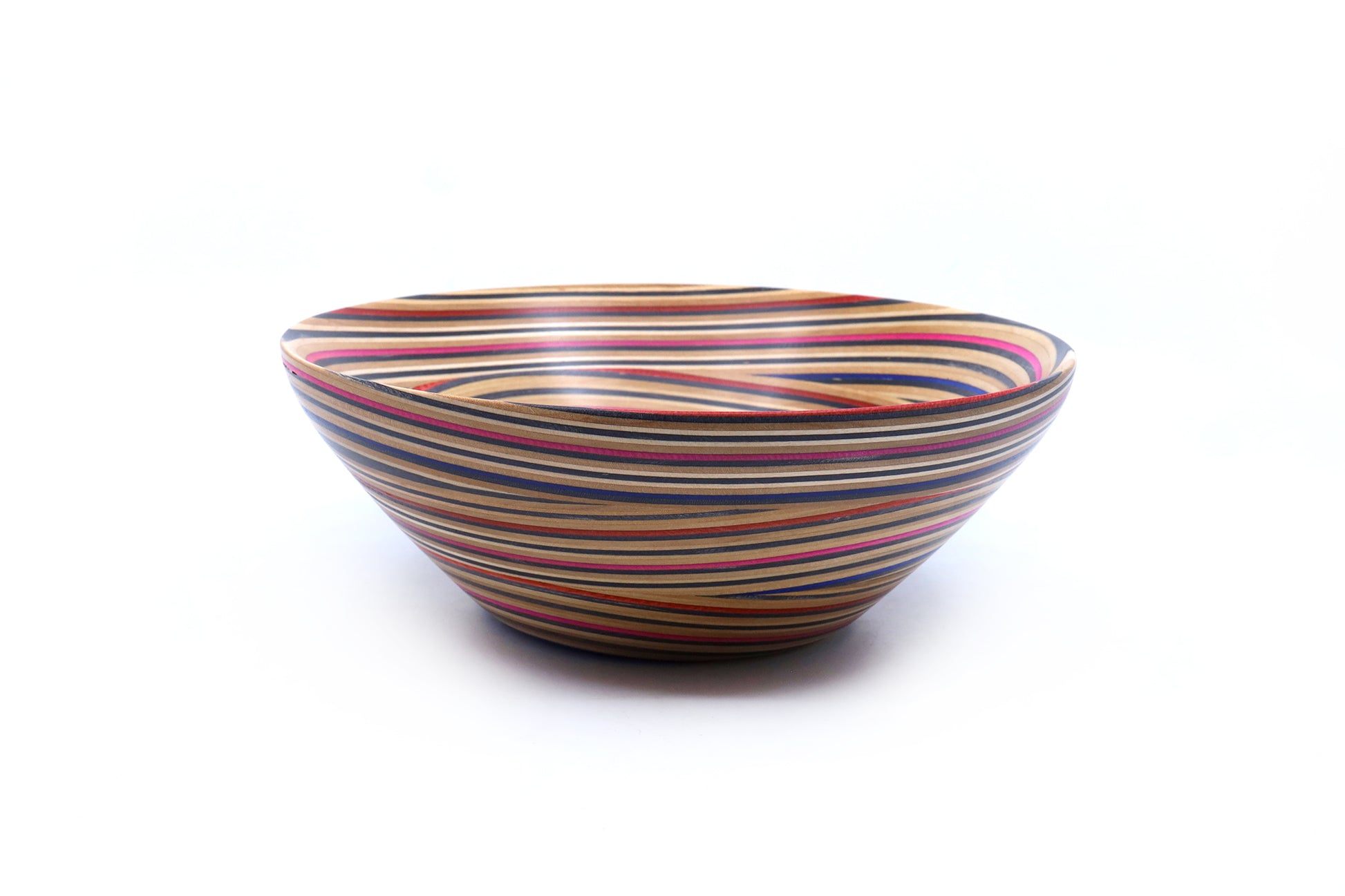 This skateboard bowl is the result of experimenting with the converging lines of skateboards, resulting in a colourful and dynamic design that will add a unique touch to any space!
