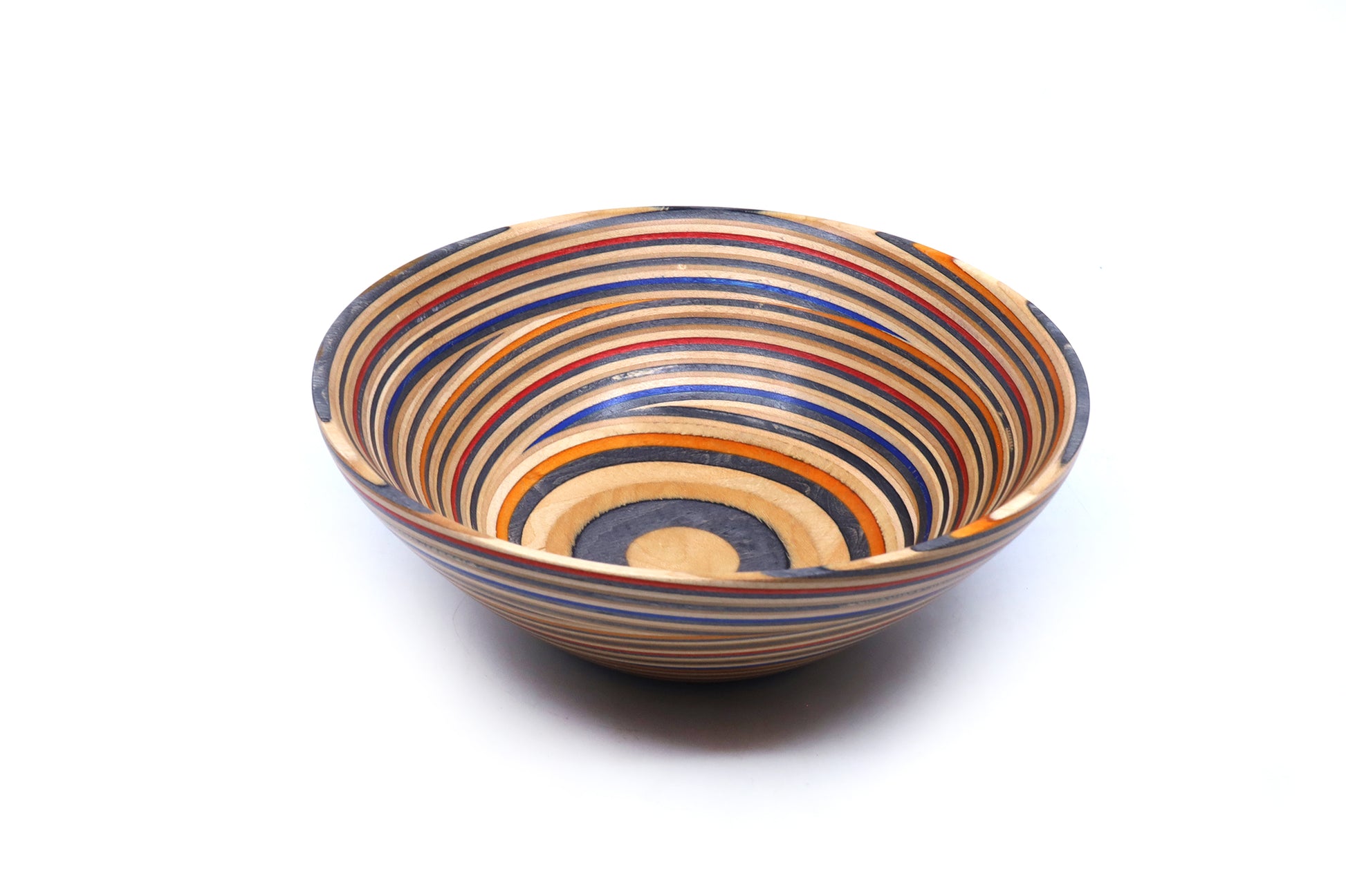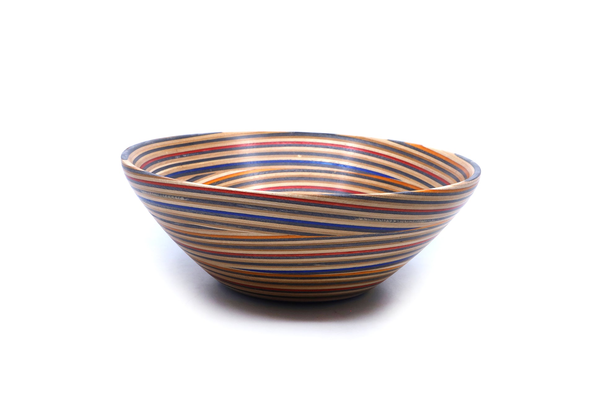This skateboard bowl is the result of experimenting with the converging lines of skateboards, resulting in a colourful and dynamic design that will add a unique touch to any space!