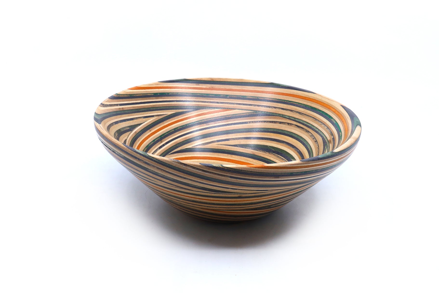 This skateboard bowl is the result of experimenting with the converging lines of skateboards, resulting in a colourful and dynamic design that will add a unique touch to any space!