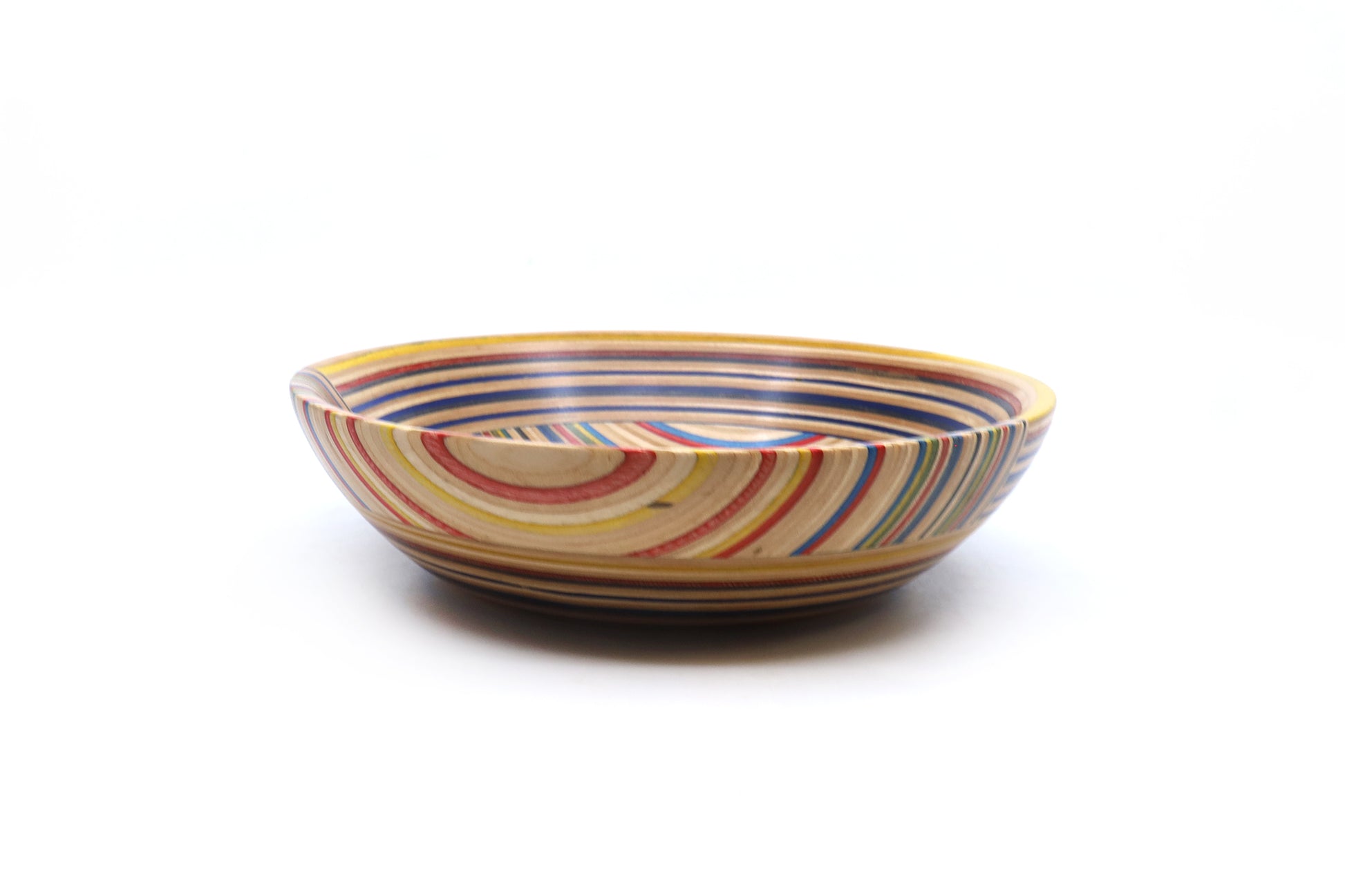 Our latest skateboard valet dishes showcase a new glue-up technique we've been experimenting with! Crafted from repurposed skateboard noses and tails, each piece is laminated and turned on the lathe to create something truly special. This layout style creates a colourful pattern that makes each dish visually captivating from every angle. Vibrant, uniquely versatile, and truly one of a kind!